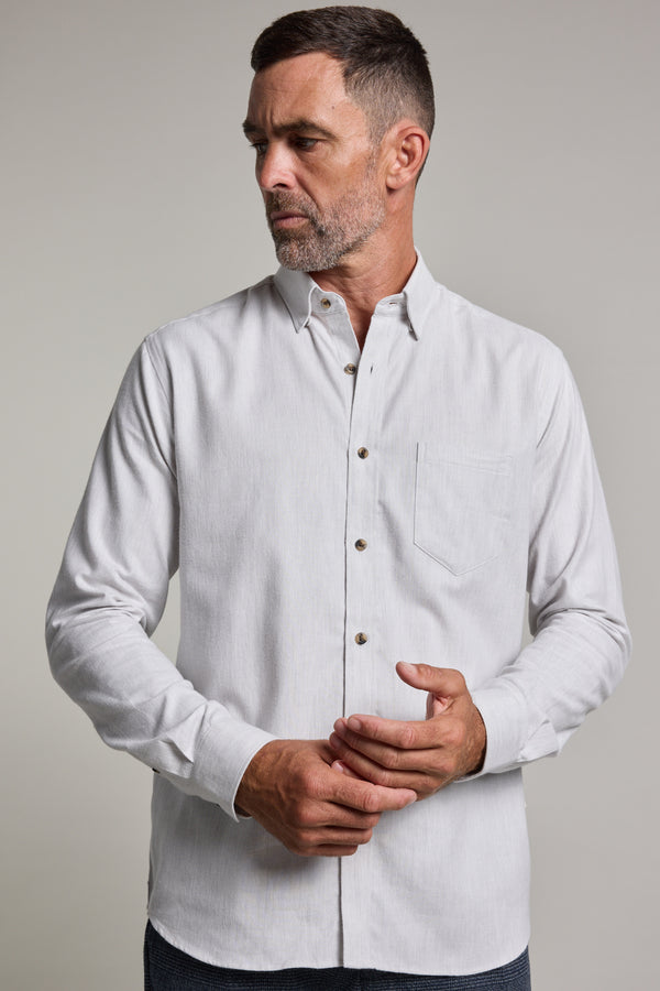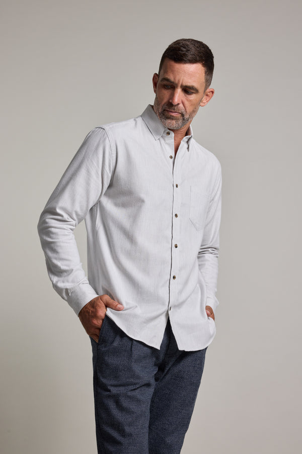 The Antonio Shirt is a timeless essential, cut in our classic fit for effortless wear. Crafted from a super-soft, responsibly sourced cotton-wool blend, it offers just the right amount of warmth for year-round layering. Thoughtfully designed with a button-down collar, single chest pocket, twin-button adjustable cuffs, and a shallow scooped hem, it’s as versatile as it is refined. Wear it buttoned up or layered over a tee—perfect with denim or chinos for an easy, laid-back look.