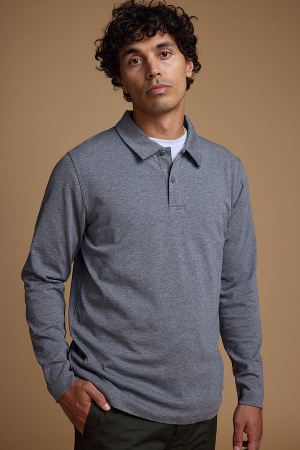 A modern interpretation of a classic, the Austin Long Sleeve Polo blends heritage design with a relaxed edge. Crafted from 100% organic cotton, it features a spread collar, tonal stitching, and a clean two-button placket. Effortlessly versatile, it’s designed to be worn solo or layered over a crisp white tee—an easy, elevated staple for wherever the day leads.
