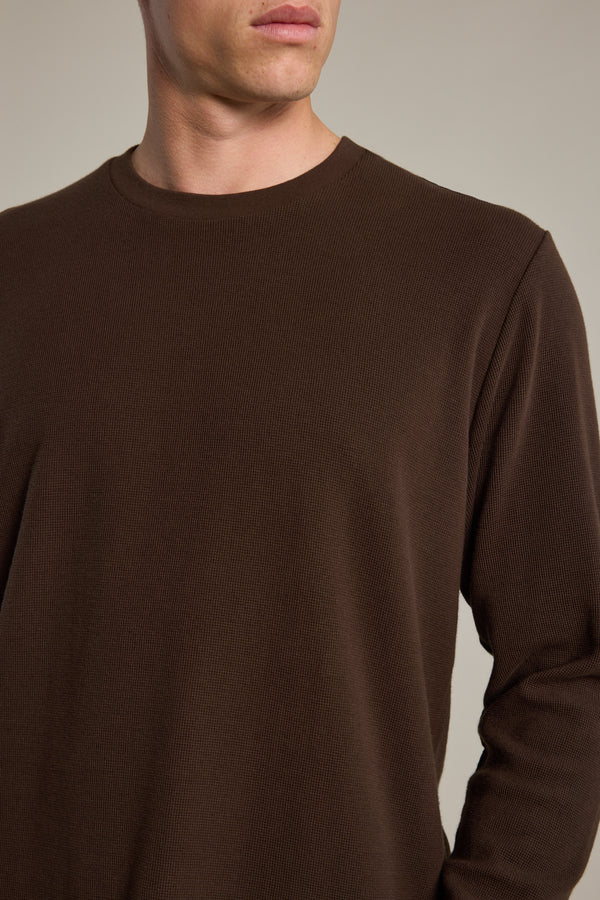 A warmer layer for when the unpredictable weather calls, you can't go wrong with the Avenue Waffle Crew, an organic cotton mid-weight layer. The uniform waffle adds a textural element that elevates any outfit; it's perfect for wearing on its own, or under a blazer or jacket for extra warmth. Constructed with a classic crew neckline and crafted from 100% certified organic, the Avenue Crew will be your go-to for those off-duty days.