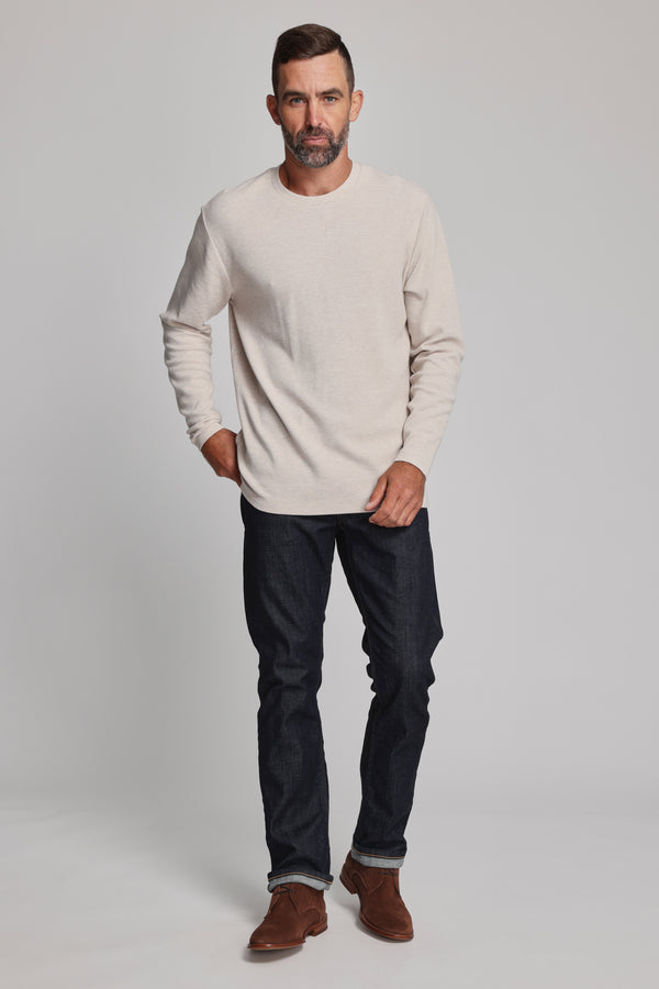 A warmer layer for when the unpredictable weather calls, you can't go wrong with the Avenue Waffle Crew, an organic cotton mid-weight layer. The uniform waffle adds a textural element that elevates any outfit; it's perfect for wearing on its own, or under a blazer or jacket for extra warmth. Constructed with a classic crew neckline and crafted from 100% certified organic, the Avenue Crew will be your go-to for those off-duty days.