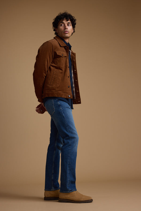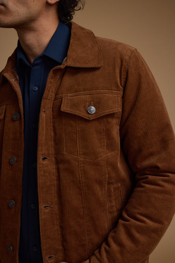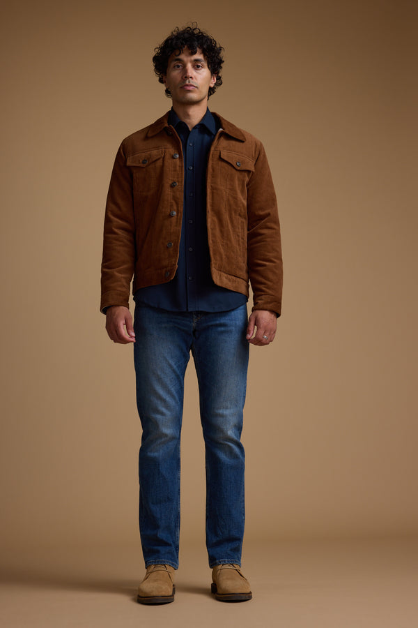 Rooted in heritage workwear and reimagined for today, this classic-cut trucker jacket is crafted in rich camel corduroy with a soft as can be flannel lining for comfort and warmth. Lightly padded for added insulation, it’s designed to wear effortlessly from season to season. Finished with a worn-in feel from day one, it layers easily over a crisp tee or flannel shirt—bringing rugged utility and refined style into perfect balance.