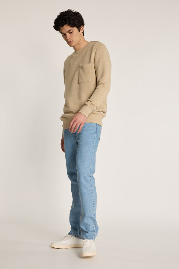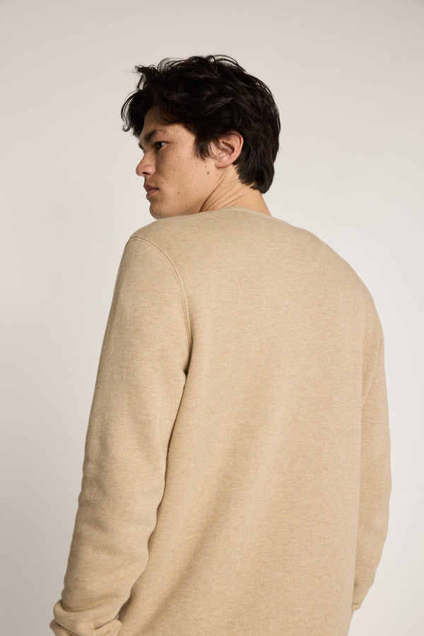 Beat the cooler days with the Bealy Twill Crew. Crafted from 100% organic cotton this mid-weight crew is the perfect layer for unpredictable weather days. Cut in a classic crew block the relaxed fit and neutral oatmeal-marle tones makes this piece an easy staple to wear with any wardrobe basics.