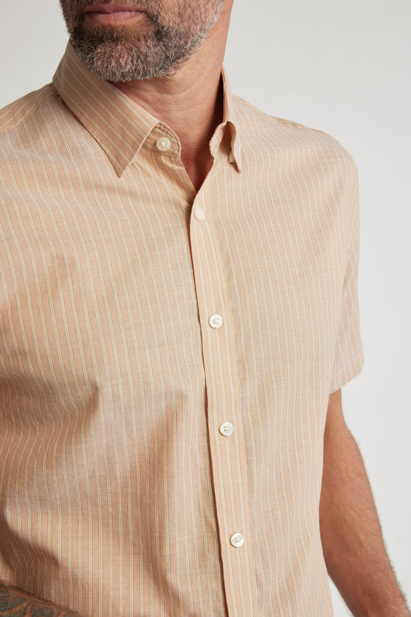 The Burnham Stripe Shirt is an NZ summertime staple - crafted from a super lightweight cotton. Cut in our tailored fit, a comfortable and breathable fit which will keep you feeling cool while still looking sharp. This contempory button up looks great on its own paired with shorts or chinos and can also be worn unbuttoned over a plain tee or singlet for a laid-back aesthetic.