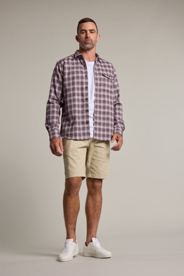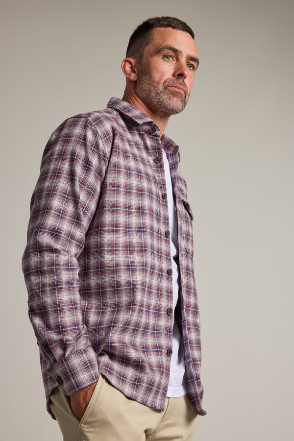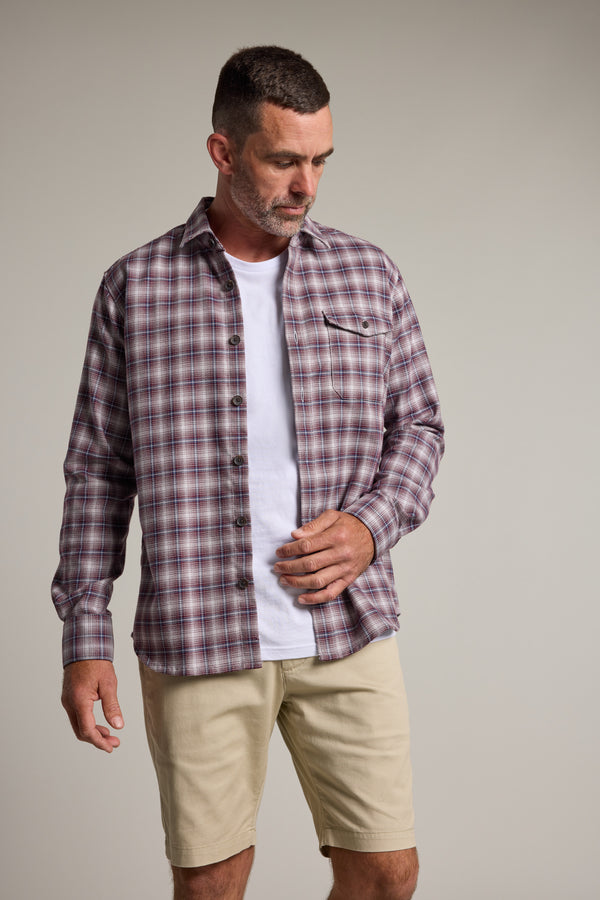 Every man’s wardrobe needs the staples: classic denim, a fresh white tee, and a versatile overshirt to pull it all together. The Byrd Check Overshirt is a standout piece, featuring soft purple-toned summer checks for effortless, everyday style. Crafted with practicality in mind, it’s designed with a button-fastened patch pocket and a contrasting button-down front for added detail. Lightweight and easy to wear, it’s the perfect layer for relaxed summer days, striking the ideal balance between refined casual wear and comfort.
