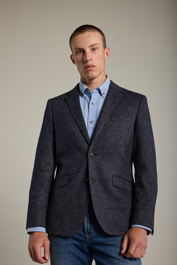 The Charlton Knit Blazer is a refined take on relaxed tailoring. Featuring a timeless blue checkered pattern, it offers a preppy yet sophisticated vibe. Designed with a single-breasted cut, notched lapels, and back side vents for ease of movement, this blazer is finished with traditional cutaway front flap pockets and no shoulder pads for a relaxed, tailored look. Effortlessly simplify your workwear while looking your best, every day.