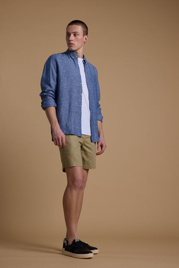 A shirt that earns its spot at the top of the rotation. Made from 100% French linen, the Dorset is naturally breathable, lightweight, and built for comfort in any season. The slightly heavier weave this year gives it a touch more structure without losing that easy, relaxed feel. Designed in our Tailored fit, finished with an exposed button-down collar and the unmistakable texture of linen — it’s the definition of laidback refinement.