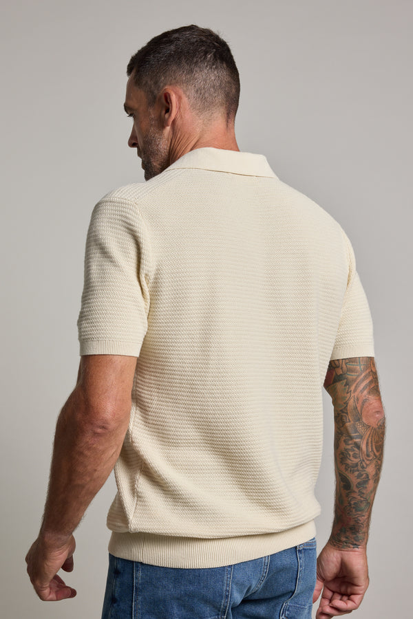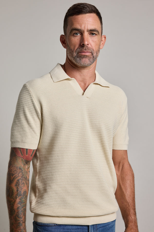 The Emory Cotton Polo is a modern take on a classic, blending timeless sophistication with effortless ease. Designed without buttons, its sleek V-notch open collar offers a refined yet relaxed feel. Crafted from responsibly sourced cotton, it features a subtle knit construction finish, ribbed trims at the hem, sleeves and collar. Whether worn with shorts, denim, or layered under a blazer, the Emory Cotton Polo is a versatile staple that moves seamlessly between smart and casual.