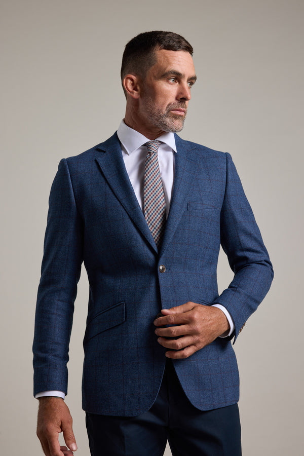 A modern classic, the Findlay Check Blazer is your new go-to for effortless refinement. Crafted from premium merino wool in a sophisticated red check on a mid-blue base, it’s half-lined for all-day comfort. The single-breasted silhouette, notched lapel, and soft shoulder pads offer the perfect balance of structure and ease, while back side vents and cutaway flap pockets add a thoughtful finishing touch. Timeless yet contemporary, this is the blazer that moves with you—wherever the day takes you.