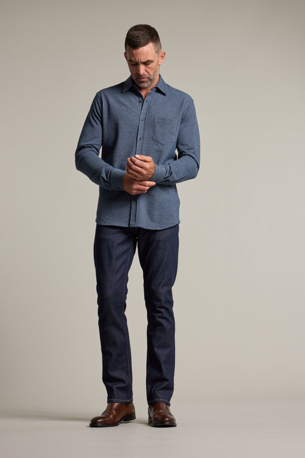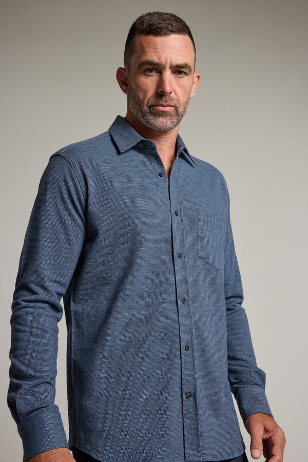 The Frye Knit Shirt is crafted from a cotton blend and has a waffle knit texture throughout. Cut in our favoured classic fit, this shirt offers a regular, loose fit; ideal for those who prefer a standard fit. It will see you through warm weather days in the office, to after work drinks. Featuring a standard yoke, adjustable cuffs and a triangle patch pocket at the chest to stash your essentials.
