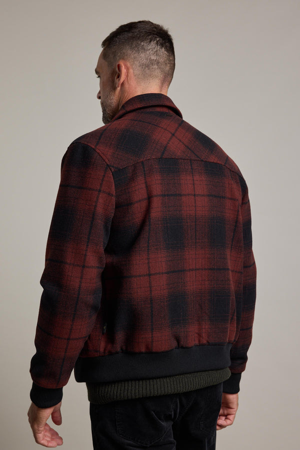 The Jeffery Wool Bomber is a true wardrobe workhorse—crafted from a premium wool and recycled polyester blend and finished in a timeless black and rust plaid. Designed with a spread collar and front zip fastening to keep the warmth in, it strikes the perfect balance between function and style. Roomy enough to layer over a knit on colder days, yet sharp enough to elevate any outfit. Pair it with denim and a crisp white Oxford for an effortless day-to-night look. Once you put it on, you won’t want to take it off.