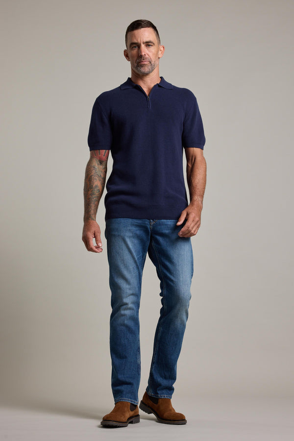 The Lakewood Cotton Zip Polo is a modern take on a timeless classic, crafted from 100% responsibly sourced cotton. Lightweight, breathable, and effortlessly refined, it delivers the perfect blend of comfort and style. Designed with a sleek ¼ zip fastening and a smart spread collar, its knitted construction offers a natural drape and an easy, relaxed feel—polished yet understated.