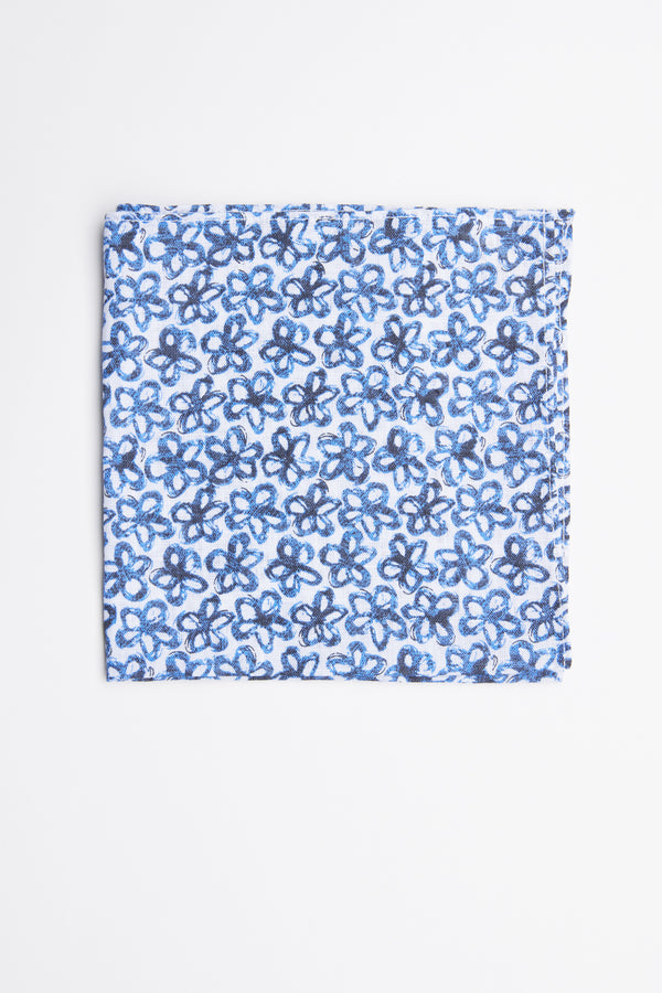 The Leafwood Linen Flower Pocket Square features a blue floral print on a white base and makes a dashing addition to formal ensembles. The Pocket Square is the easiest way to add personality and style to your outfit. There are no stead fast rules - it should simply complement your shirt and tie, not necessarily match them.