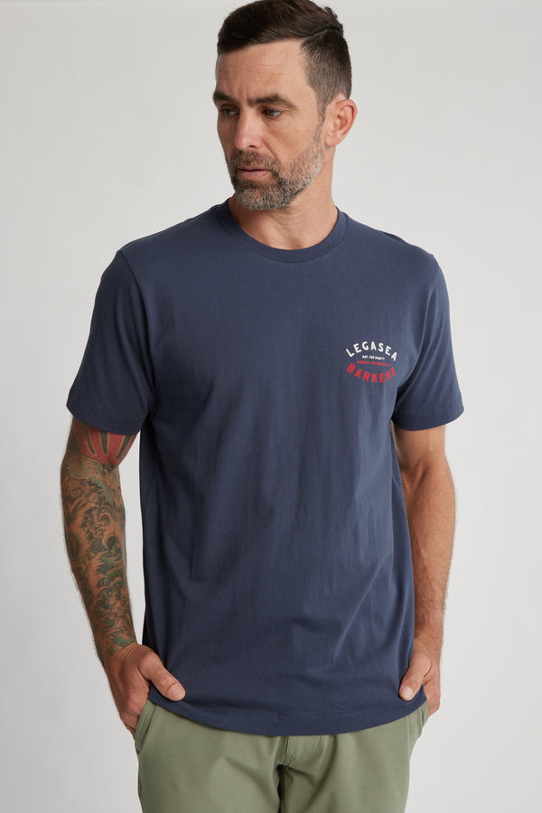 The LegaSea Supporter Print Tee is consciously crafted from 100% organic cotton that has a naturally soft and lightweight feel, and unmatched breathability. Featuring a Legasea x Barkers supporters illustration by Auckland artist Blake Gordon on the back of the tee.