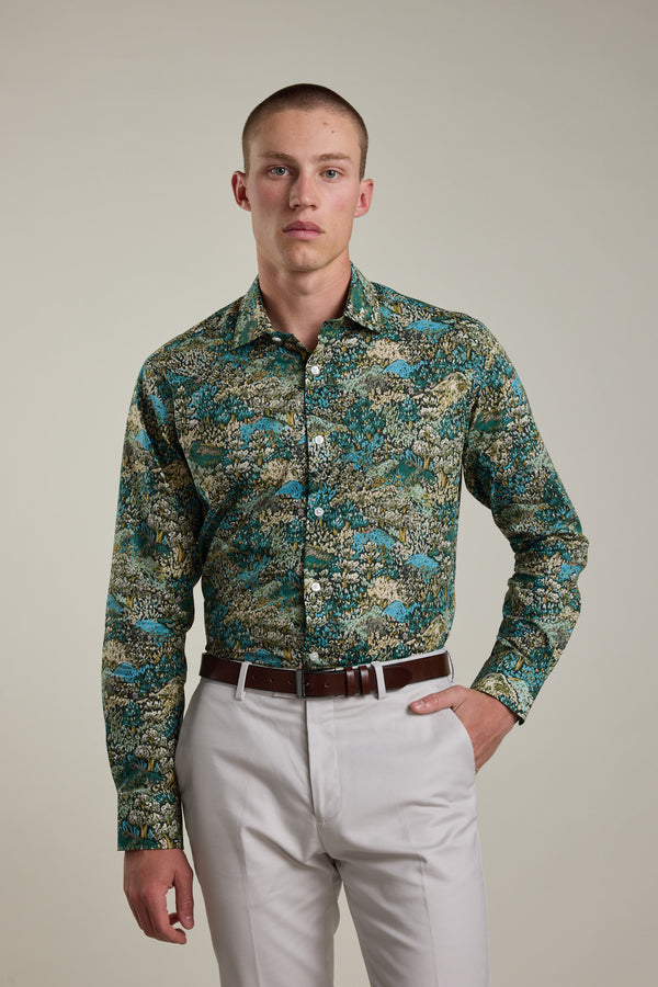 The Liberty Darley Hillside Shirt is a statement in effortless sophistication. Featuring an intricate rolling hillside print in cool, balanced tones, it’s a standout piece with a refined edge. Part of our exclusive Limited Edition Liberty Collection, this is craftsmanship and style at its finest—designed for those who appreciate the details.