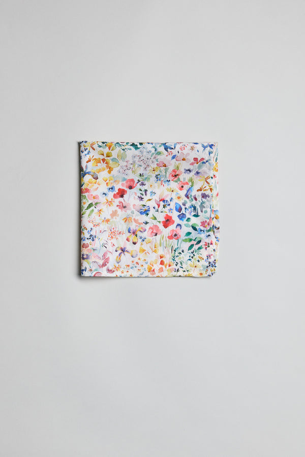 The Liberty Felda Pocket Square features a multi coloured watercolour print on a white base. Crafted from Tana Lawn cotton, a bespoke process that has evolved over a century and printed in Liberty's own mill in northern Italy - resulting in striking colour with a silk-like touch. The Pocket Square is the easiest way to add personality and style to your outfit. There are no stead fast rules - it should simply complement your shirt and tie, not necessarily match them.