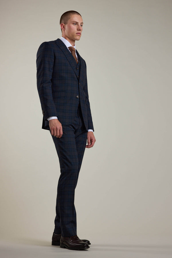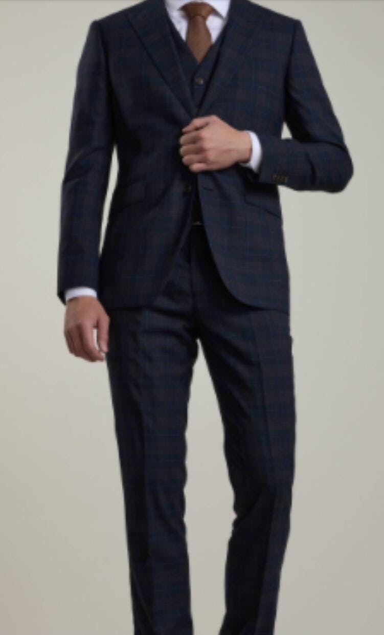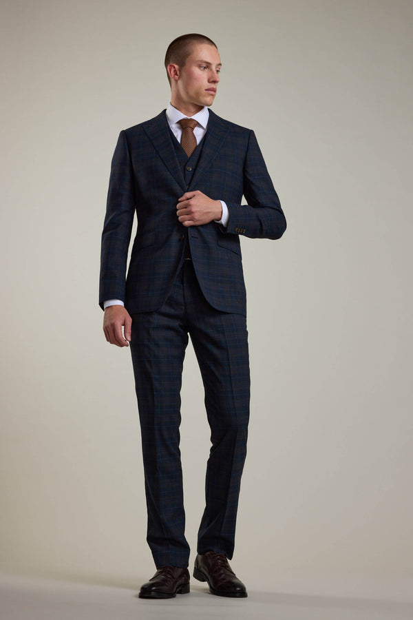 The Lockhard Suit is designed to take you from sharp weekdays to elevated evenings. Tailored in a refined blue and rust check, these suit pants are half lined to the knee for comfortable all day wearing. Designed with practical welt pockets, and a flattering front finish, this style is part of a polished three-piece ensemble.