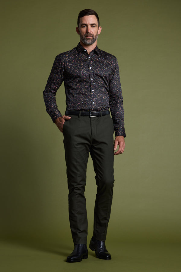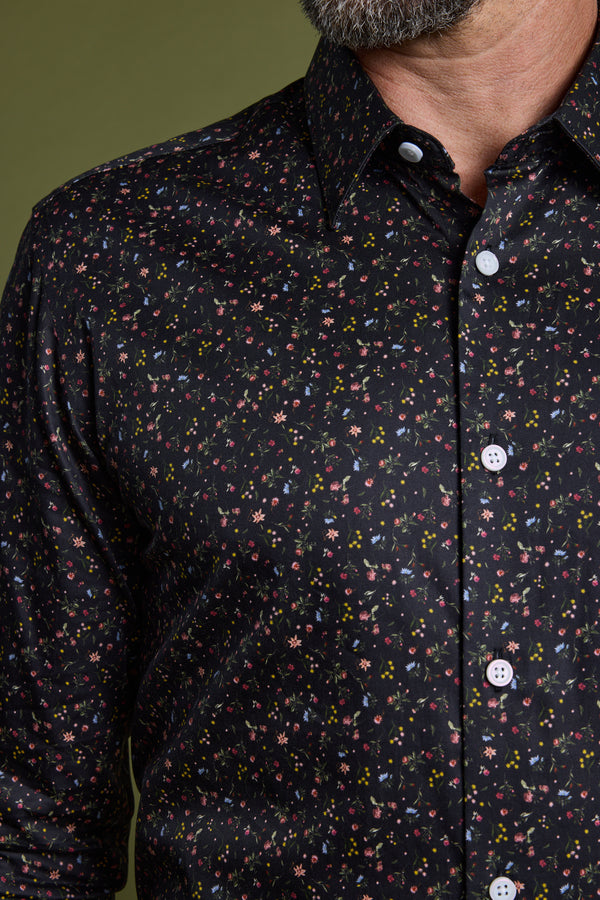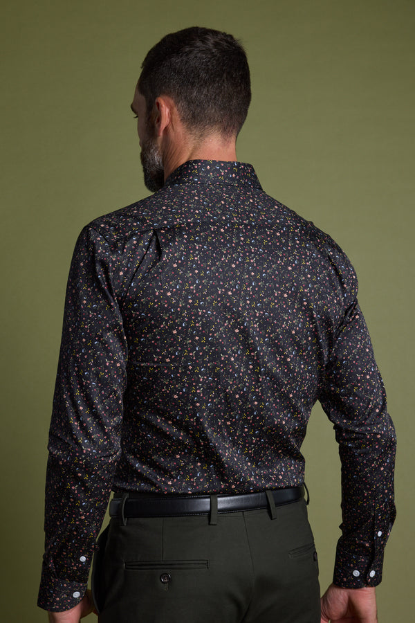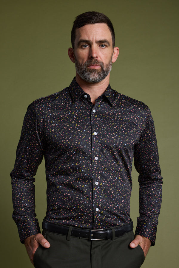 Elevate your work wardrobe with the Marywood Business Shirt. Crafted from responsibly sourced cotton, it features a vivid summery floral print set against a rich satin black background for a bold yet sophisticated look. Designed in our most loved tailored fit, it delivers a sharp, polished finish that’s perfect for making a statement at the office.
