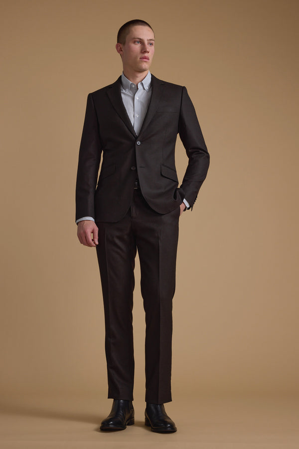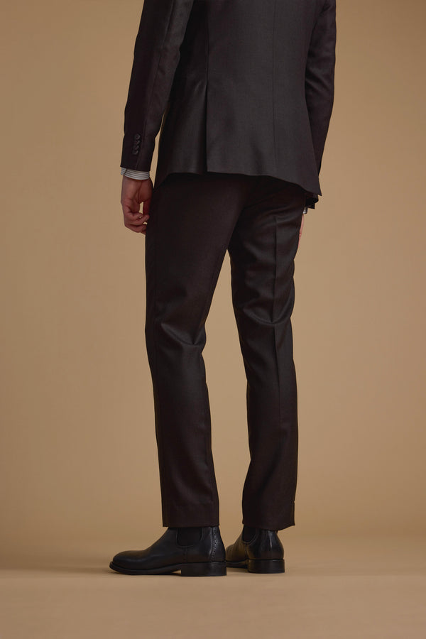 The Moray Textured Suit Trousers are tailored from a rich, deep brown Super 100’s wool — a distinctive shade that brings something new to your rotation. Featuring a flat front, single pleat, and half lining to the knee for comfort and ease of movement. Finished with a subtle textured weave, they’re the perfect foundation for modern tailoring. Pair with the matching jacket for the full effect.