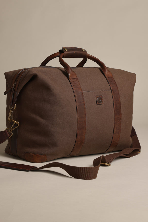 The Newman Canvas Weekender combines robust organic cotton canvas and premium leather for a clean-lined and dependable travel companion. It's a weekend holdall statement that's as strong in stature as it is in good looks. From casual adventures to jet-setting the Newman will fit a weekend’s worth of clothes with ease (and in style). Thoughtfully designed with just enough pockets that you'll actually use and an ultra-wide zip opening for easy access. Lined with a recycled cotton with a timeless check, while the brass hardware and understated embossed branding add a refined touch. This premium quality men’s weekender is finished with two sturdy carry handles and a detachable, adjustable shoulder for increased comfort and versatility.