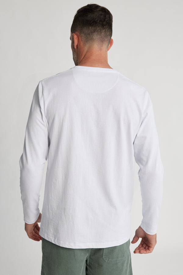 The Newton Long Sleeve Washed Tee is a updated basic that forms a timeless foundation for any outfit. Crafted from a heavyweight 100% Organic Cotton and cut in the same oversized box fit as our classic Newton Tee with a crew neck, blind stitch hems and BMC patch on the chest. The fabric construction has been garment dyed and washed for a vintage look that pairs effortlessly with jeans or chinos and is the perfect layering piece with overshirts or jackets when it starts to get cooler.