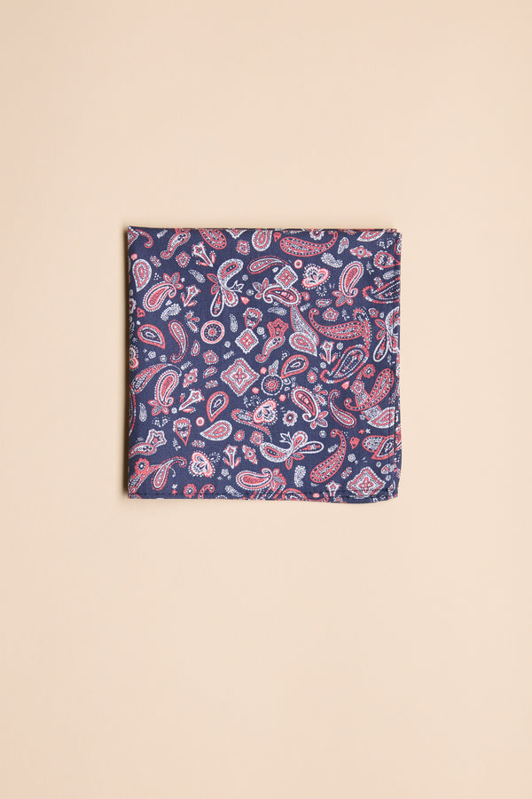 The Paisley Pocket Square features an all over print in purple and navy tones. The Pocket Square is the easiest way to add personality and style to your outfit. There are no stead fast rules - it should simply complement your shirt and tie, not necessarily match them.