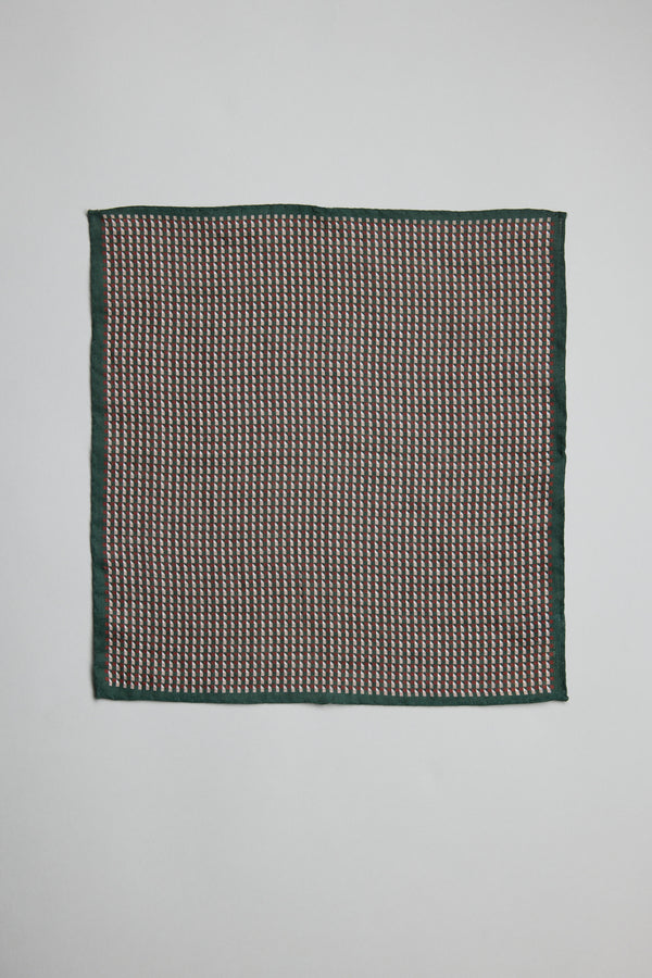 The Parisian Geo Linen Pocket Square features an all-over geometric print in navy, red and green tones and makes for a stylish addition to formal ensemble. The Pocket Square is the easiest way to add personality and style to your outfit. There are no steadfast rules - it should simply complement your shirt and tie, not necessarily match them.