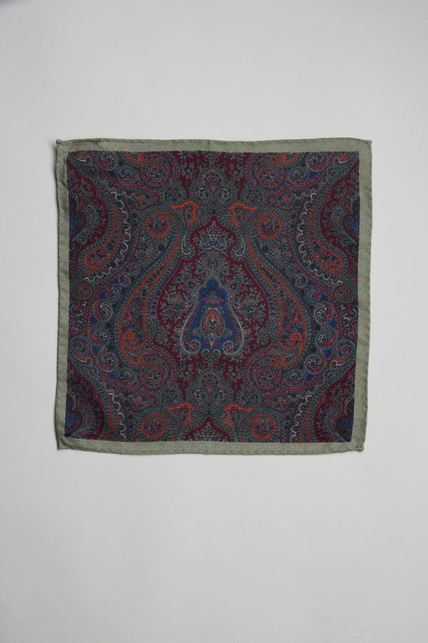 The Parisian Paisley Wool Pocket Square is crafted a lightweight wool featuring a large scale paisley print with a olive border. A Pocket Square is the easiest way to add personality and style to your outfit, and makes for a stylish addition to formal ensembles. There are no steadfast rules - it should simply complement your shirt and tie, not necessarily match them. Handmade in a factory on the edge of Myers Park in Auckland's CBD, Parisian turn out beautifully made ties, belts and accessories the same way they always have, since the company's founding in 1919.