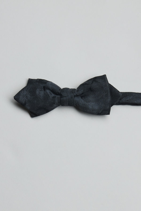 The Parisian Palmer Pattern Bow Tie features a floral jacquard that gives a subtle texure on a black backdrop. A refined way to bring depth and character to your look, it’s an effortless statement for formal occasions where style is in the details.