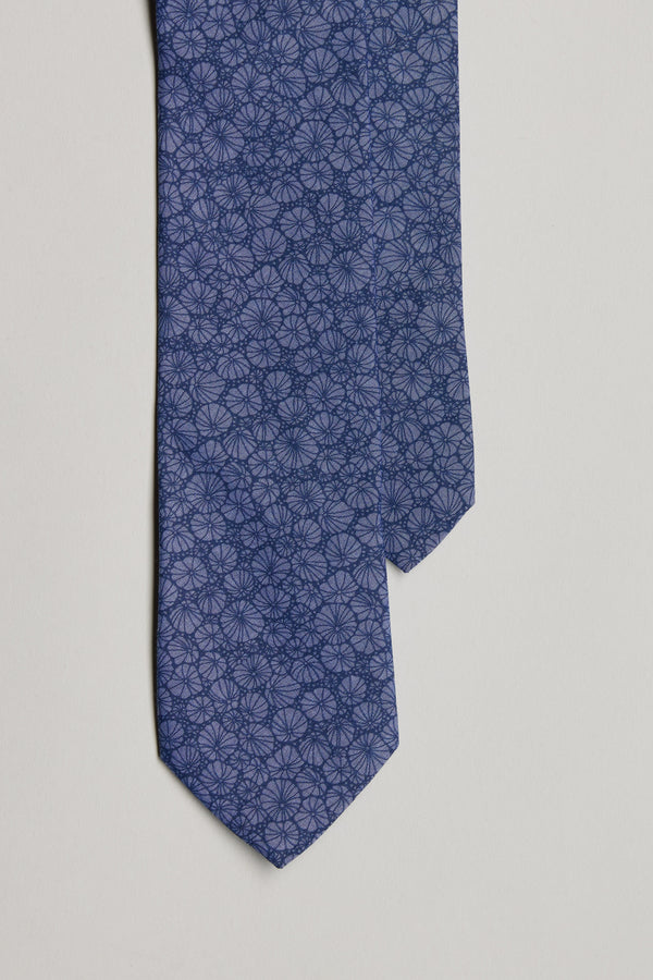 The Liberty Seashell Bloom Tie features an all over sea urchin print and makes a dashing addition to formal ensembles. The Seashell Bloom Tie is a celebration of summer, with delicately drawn shells all over displayed on a soft blue base. Crafted from Tana Lawn cotton, a bespoke process that has evolved over a century and printed in Libery's own mill in northern Italy - resulting in striking colour with a silk-like touch.