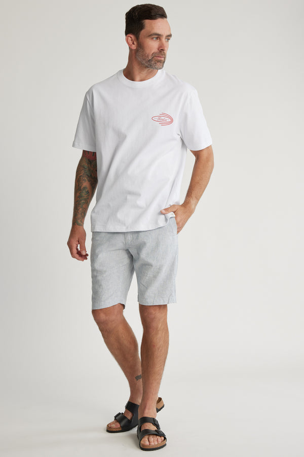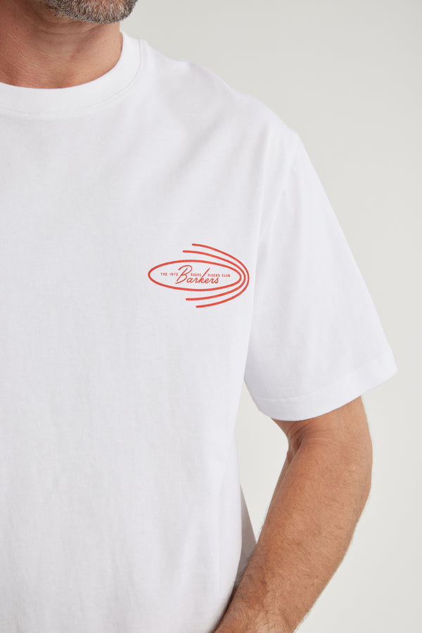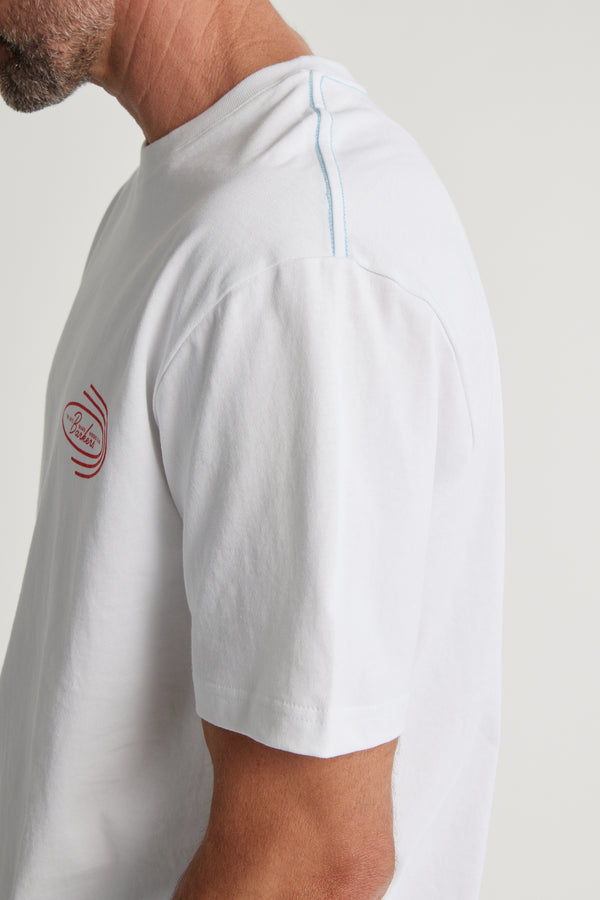 The Single Fin Print Tee is a heavyweight box fit, perfect for those cooler summer days and nights. This surf inspired tee has a small logo on the front, with a larger print on the back. Featuring contrast stitching on the back side of the neckline to keep it interesting, this tee has landed just in time for your holiday adventures. Pair with shorts and sandals for an everyday look, or dress it up at night by adding some pants and sleek sneakers.