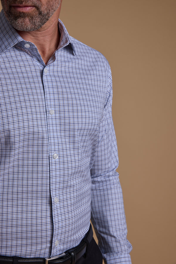 A business staple redefined. The Tabor Check Shirt features an easy to wear blue check across a breathable cotton and finished with our Eco Easy Care treatment. The tailored fit delivers a modern slim fit, perfect for a full day in the office or after-hours engagements.
