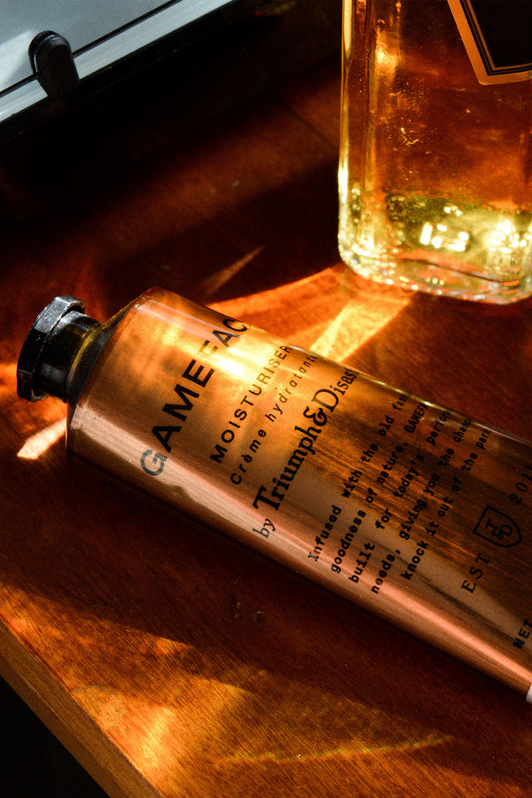Triumph & Disaster's Gameface moisturizer is a tool to serve and protect you against the elements. Specifically engineered to be light on the skin and easily absorbed, Triumph & Disaster's Gameface is a unique formulation of Jojoba extract, Horopito oil, Ponga fern (Cumingii) and Vitamin E, combined with a subtle infusion of essential oils to deliver a fragrance we call 'smoke and wood'. The result is a nutrient rich, hydrating cream that will leave skin feeling toned, supple and fresh.