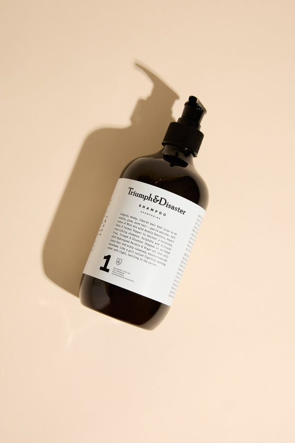 Triumph & Disasters Acacia and Gypsophila shampoo is a deep cleansing, gentle foaming, 100% naturally derived shampoo. The formula is enhanced with fresh peppermint notes while tazman pepper actively treats the scalp, the keratin rich formula ensures volume and structure are kept in balance and damaged hair the chance to recover and rebuild. Sulphate free to avoid pore blockage and brittle hair, Triumph & Disaster Shampoo utilises gentle plant based cleansers to remove build up of excess oils and residual hair products, making for a genuine hair & scalp treatment that has been cunningly disguised as a humble shampoo.