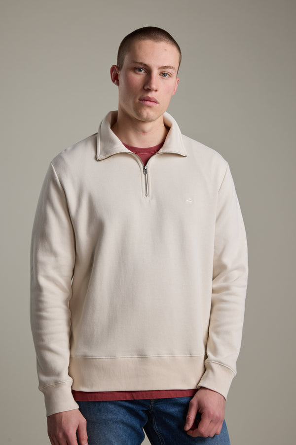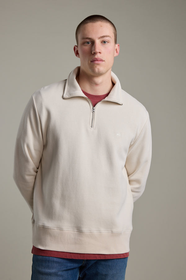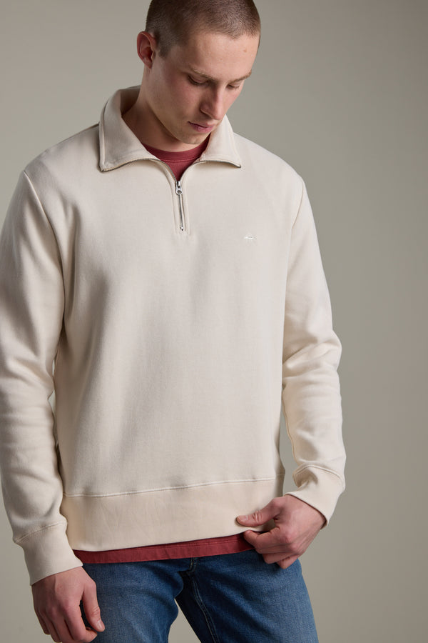 A clean, easy-wearing layer built for year-round comfort. The Wayfarer 1/4 Zip is crafted from 100% cotton with a soft handle, offering a versatile piece that works just as well over a tee as it does layered under a jacket. Finished with a quarter zip funnel neck for a relaxed, sporty edge and Barkers crayfish embroidery at the chest.