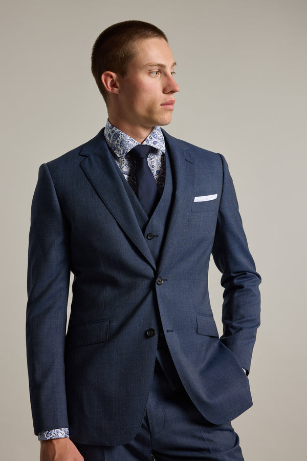 The Yeaton Textured Suit Jacket is crafted in a refined navy blue, offering a sleek, timeless design. Tailored with a single-breasted cut, it features back side vents for ease of movement, cutaway flap pockets for practicality, and regular shoulder pads for a structured look. Fully lined for comfort, the textured fabric adds a subtle depth to its appearance. Effortlessly transition from your 9-to-5 to elevated occasions by pairing it with the matching waistcoat for a sharp, polished ensemble.